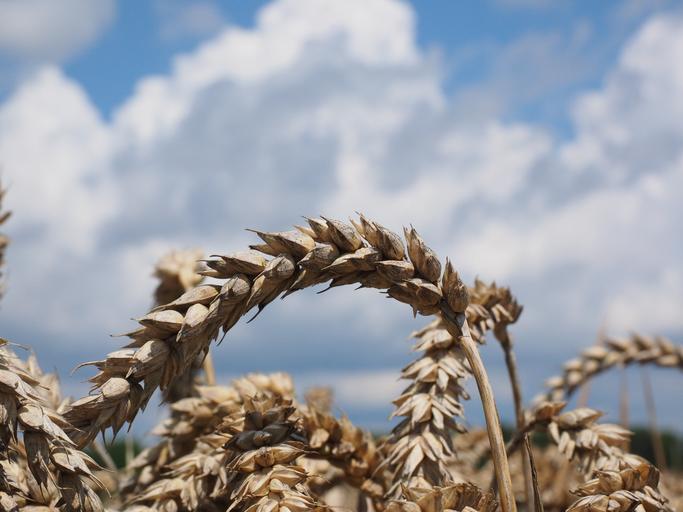 | Keywords: wheat spike cereals grain field wheat field cornfield plant eat food arable ear agriculture agricultural cultivation nature triticum aestivum corn ear ear of corn halm ripe land rural golden season straw summer yellow harvest triticum poaceae grass sky clouds |