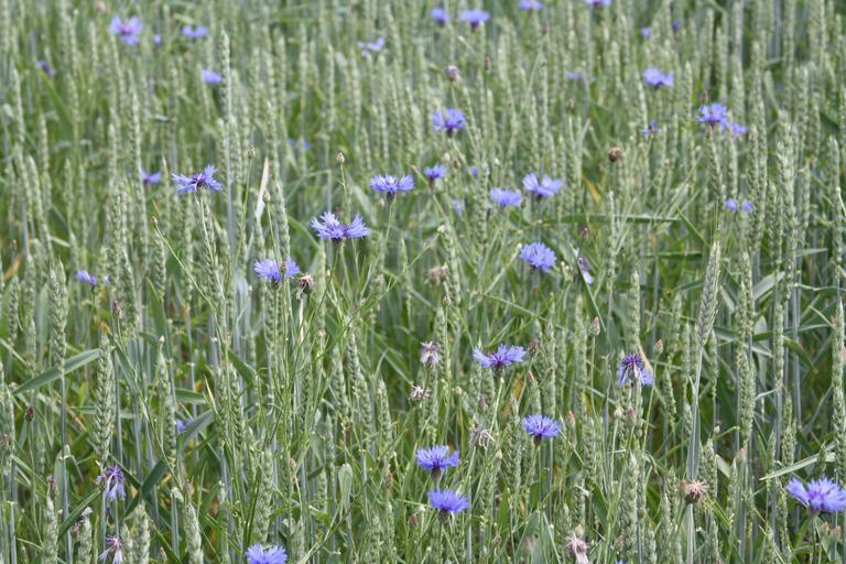 Keywords: wheat summer field mature cornflowers biological cornfield agriculture wheat spike harvest meadow blue green wheat field cultivation