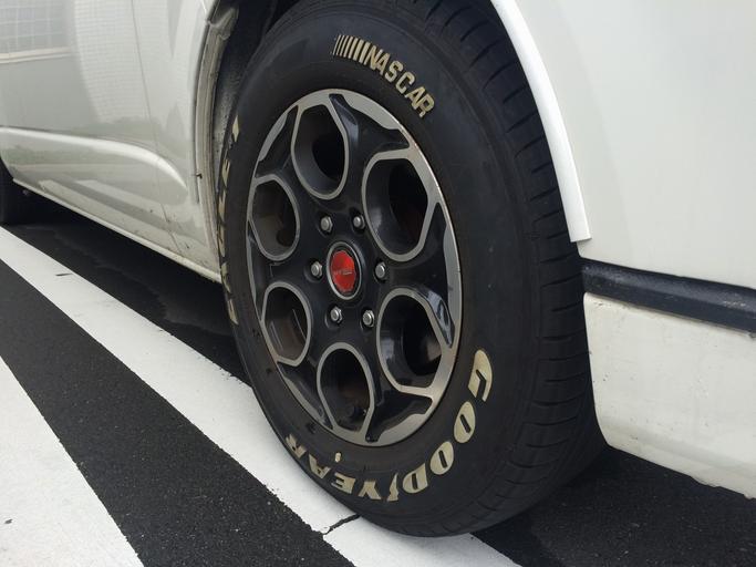 Keywords: wheel car tire aluminum alloy toyota motor corporation camper parking lot yokosuka japan summer orange black white