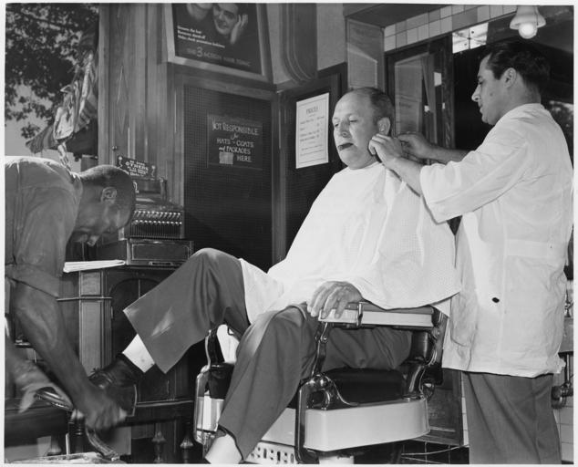 | Keywords: When Joe Smith goes down to the barber shop (after July 1) for a haircut, shave and shine, only the price of the... - NARA - 195457.jpg Scope and content General notes 195457 Local identifier Roosevelt Franklin D Franklin Delano 1882-1945 Franklin D Roosevelt Library NLFDR 4079 Albany Post Road Hyde Park NY 12538-1999 ca 05/1942 Record group Collection FDR-PHOCO Franklin D Roosevelt Library Public Domain Photographs 1882 - 1962 Record group ARC 1184 Franklin D Roosevelt Library Public Domain Photographs compiled 1882 - 1962 Series ARC 195301 File unit File unit ARC Variant control numbers NAIL Control Number NLR-PHOCO-A-6652 26 Other versions <gallery> File When_Joe_Smith_goes_down_to_the_barber_shop_ after_July_1 _for_a_haircut _shave_and_shine _only_the_price_of_the _-_NARA_-_195457 tif tif File When_Joe_Smith_goes_down_to_the_barber_shop_ after_July_1 _for_a_haircut _shave_and_shine _only_the_price_of_the _-_NARA_-_195457 jpg jpg </gallery> NARA-cooperation PD-USGov Barber shops in the United States Barbers from the United States 1942 in the United States |