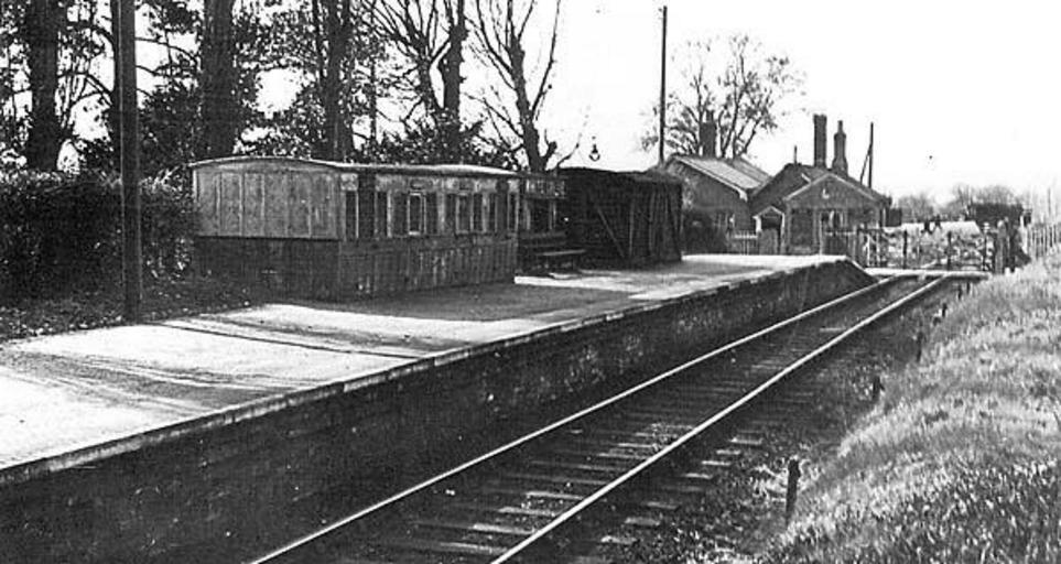 Keywords: 51 56N 0 43E White Colne railway station, 1947, was located in White Colne, Essex. 16 Apr 1860 Opened. 1 Jan 1962 Closed.