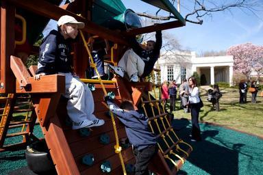 Keywords: White House playground.jpg Oval Office can be seen in the background Roseraie Les 3 fenêtres du bureau ovale peuvent être vues en arrière plan The Official White House Photostream http //www flickr com/photos/whitehouse/3630221450/ White House Lawrence Jackson 2009-03-24 PD-USGov Outside of the Oval Office Playgrounds in Washington D C Photographs by Lawrence Jackson 20090304 |