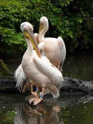 Keywords: white pelican pink pink pelican pelicans birds waterfowl pair