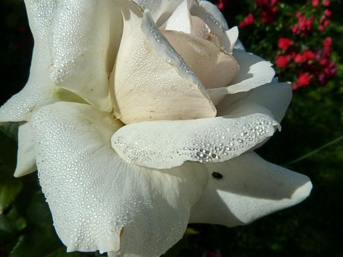 Keywords: white rose flower rain drops humid plant nature vegetation beauty close-up