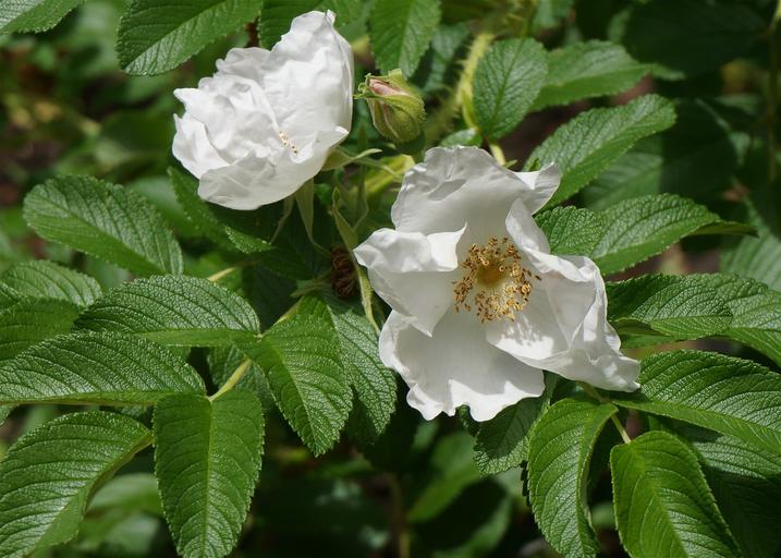 Keywords: white rugosa rose rose bud flower blossom plant garden leaves nature