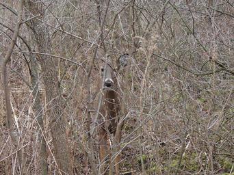 Keywords: white tailed deer hiding leave less bushes animal nature woods