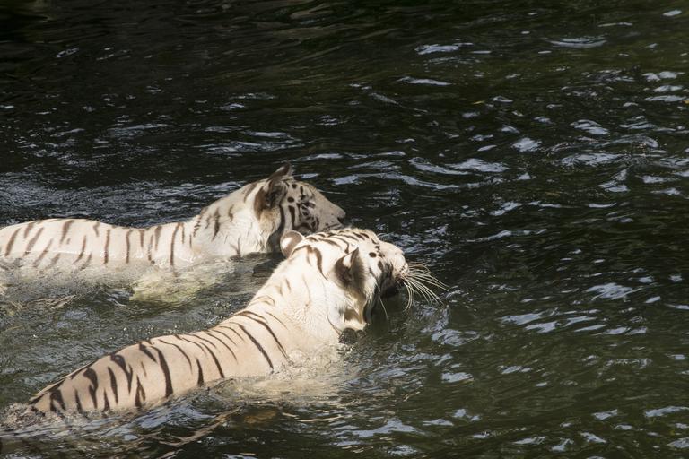 Keywords: white tigers tigers cats felines animals swimming water striped stripes danger wildcat big wildlife bengal safari dangerous wild predator hunter fur face endangered