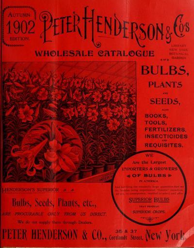 Keywords: Wholesale price list of requisites for florists and market gardeners (16588937768).jpg EDITION <br> °3o K I I - <br> WHOLESALE CATALOGUE <br> – fOFf <br> BULBS <br> PLANTS <br> AND <br> SEEDS <br> ALSO <br> BOOKS <br> TOOLS <br> FERTILIZERS <br> INSECTICIDES <br> HENDERSON'S SUPERI OR j <br> s Seeds Plants etc <br> i PROCURABLE ONLY FROM US DIRECT <br> We do not supply them through Dealers <br> AND <br> REQUISITES <br> WE <br> Are the Largest <br> IH PORTERS GROWERJ <br> «g OF BULBS <br> IN AflERICA <br> \nd handling the unusually large quantities that we <br> io hi sides being experienced forcers ourselves <br> we ar in consequence enabled to select and offer <br> S UPERIOR gULBS <br> THAT PRODUCE <br> SUPERIOR CROPS <br> rETER HENDERSON CO tU lew yorl- 45174339 160879 84546 Title Page http //www biodiversitylibrary org/page/45174339 1902 Henderson Peter Co ; Stumpp Walter Co New York N Y Biodiversity Heritage Library Wholesale price list of requisites for florists and market gardeners / 1897-1913 Garden Stories Catalogs Henderson Peter Co New York New York State Nurseries Horticulture Nursery stock Seed industry and trade Seeds Stumpp Walter Co New York N Y Mertz Library The New York Botanical Garden bhl page 45174339 dc identifier http //biodiversitylibrary org/page/45174339 bhlGardenStories Flowers Bulbs Vegetables Lilies BHLinbloom henderson peter co new york new york state nurseries horticulture stumpp walter co new york n y mertz library the new york botanical garden bhlgardenstories bhlinbloom Information field Flickr posted date ISOdate 2015-03-10 CC-BY-2 0 BioDivLibrary https //flickr com/photos/61021753 N02/16588937768 2015-08-24 21 53 52 cc-by-2 0 PD-old-70-1923 Wholesale price list of requisites for florists and market gardeners 1902 Photos uploaded from Flickr by Fæ using a script |