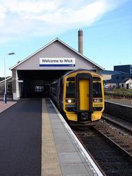 Keywords: 58 26N 3 06W Wick railway station is a railway station serving the town of Wick, in the Highland council area in the north of Scotland. 28 July 1874 Opened. Attribution: OLU