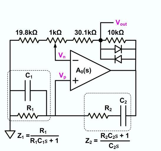 | Keywords: Wien Bridge Oscillator with diode limiting.png en A Wien bridge oscillator that uses diodes to limit the output The design yield total harmonic distortion of 1 to 5 depending on how carefully it is adjusted 2015-09-20 own Constant314 other versions cc-zero Uploaded with UploadWizard Electronics Electronic oscillators |