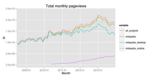 MAKE A MEME View Large Image Wikimedia sites pageviews.svg en Aggregate monthly pageviews for Wikimedia sites as a function of platform mobile vs desktop 2014-01-27 14 25 27 own DarTar cc-zero Uploaded with UploadWizard Wikipedia statistics