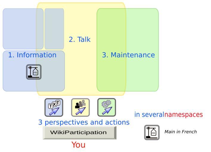 MAKE A MEME View Large Image WikiParticipation-1-fr.svg en About namespaces and tasks ; first of four schemas fr Premier de quatre schémas de répartition des espaces de nom selon trois types de participation Le contenu - les discussions - la maintenance A utiliser ...