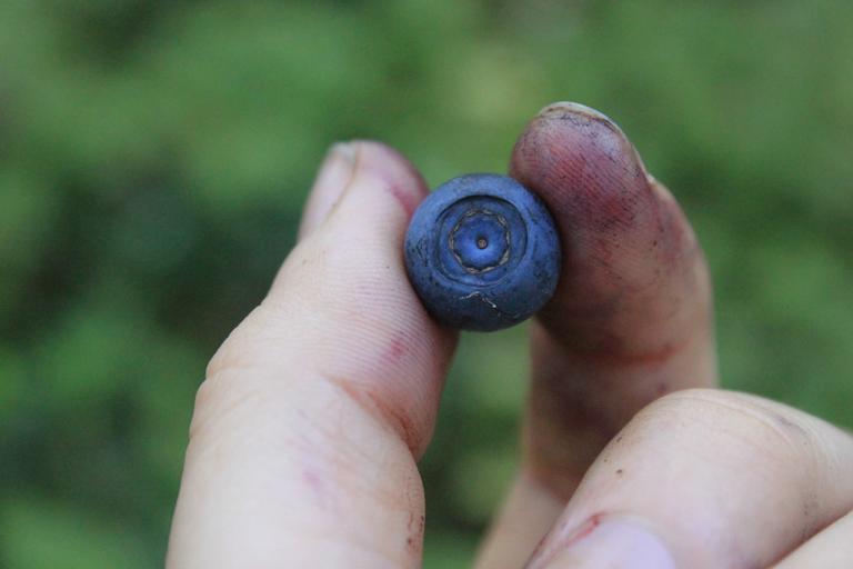 Keywords: wild berry blueberry blueberries in the hand berry in hand dirty hands food forest closeup berry