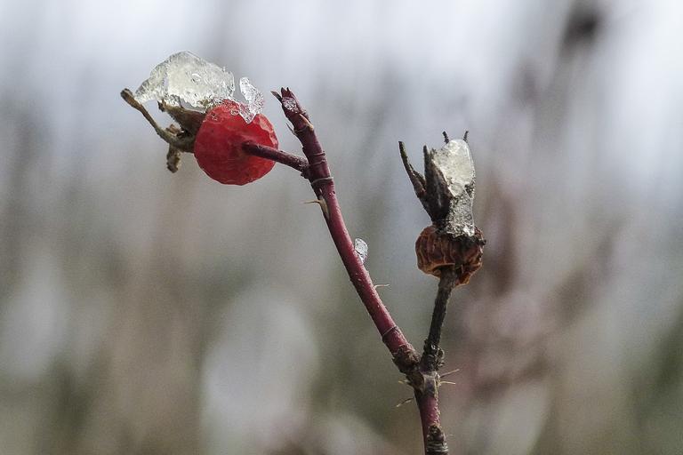 Keywords: wild brier dog rose hip rose hip withered frozen fruit wild rose wintry antioxidant plant nature frosty cold season winter close-up