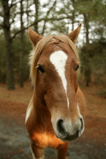 Keywords: wild pony close head portrait pony chincoteague island virginia usa feral nature small wildlife wooded