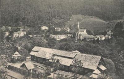 Keywords: Wildbad Neue Lesehalle mit Kernerstraße 1903.jpg Ausschnitt aus einer Ansichtskarte www ak-ansichtskarten de 1903 author old Gartenhalle Bad Wildbad PD-old