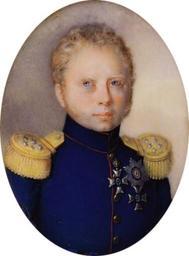 | Keywords: Wilhelm I von Württemberg by Johann Michael Holder.jpg Artwork en King William I of Württemberg 1781-1864 in blue uniform with red piping and gold epaulettes wearing the cross of the Royal Württembergian Order of Frederick founded 1830 the badge of the Royal Württembergian Order of Military Merit and one other badge; sky background < 1861 miniature ivory unknown Christie's online 5160988 other versions PD-old-100 Johann Michael Holder 19th-century portrait paintings location missing 1830c William I of Württemberg 1830c 19th-century portrait paintings not categorised by year Male 19th-century oval portrait miniatures of men at bust length 1830c 19th-century portraits in military uniforms 1830c Badges of chivalric orders in portrait paintings 1830c Blue clothing in art male 1830c Paintings on ivory Stars of chivalric orders in portrait paintings 1830c |