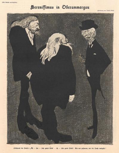 | Keywords: Wilke Serenissimus in Oberammergau.jpg Simplicissimus Jahrgang/Band V 1 Heftnummer 24 04 September 1900 S 189 Serenissimus in Oberammergau Während der Pause žÃ„h “ hm “ sehr gutes Stück “ äh “ sehr gutes Stück Bin nur gespannt wie die Sache ausgeht http //www simplicissimus info/article/39296 1900-09-04 Rudolf Wilke PD-old 1900 cartoons Simplicissimus Rudolf Wilke Passionsspiele Oberammergau Historical images of Oberammergau | ||||