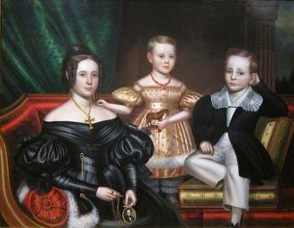 Keywords: willard family oil canvas painting borden limner female woman children boy girl noble elegant old antique decoration