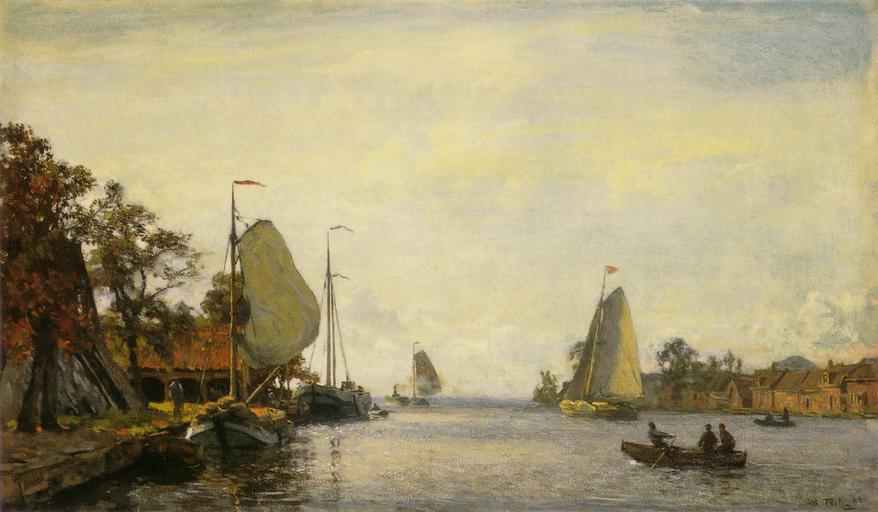 Keywords: Willem Bastiaan Tholen - Zomers riviergezicht met zeilschepen.jpg en Riverscape with sailing boats in the summer 35 4 cm x 59 cm oil on canvas private collection Nederland uit de kunst ISBN 9058973794 Creator Willem Bastiaan Tholen 1904 PD-old-auto 1931 Willem Bastiaan Tholen |