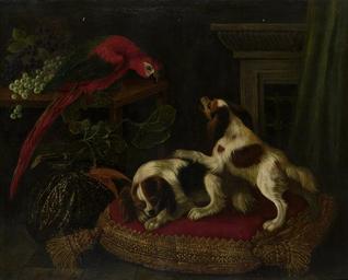 | Keywords: Willem Gabron (Attr.) - Still life with macaws and two King Charles spaniels.jpg Attributed to Still-life with macaws and two King Charles spaniel - 1634 1678 Oil canvas cm 82 102 object history At Kunsthaus Schnuerpel 14 December 2013 lot 34 https //www liveauctioneers com/item/22263761_willem-gabron-attr Other versions PD-old-100-1923 DEFAULTSORT Gabron Still-life with macaws and two King Charles spaniel Willem Gabron 17th-century paintings of dogs 17th-century paintings of parrots King Charles Spaniel in art Oil paintings of dogs Paintings with cushions Still-life paintings with dogs Still-life paintings with living parrots |