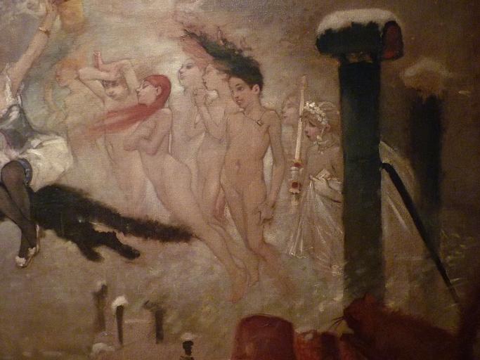 | Keywords: WILLETTE Adolphe,1884 - Parce Domine - Detail 075.jpg Detail 075 - Jeunes vierges nues et petite communiante tenant un cierge au-dessus des toits de Paris - - Young naked virgins and a little communicant holding a lighted candle above the roofs of Paris - Montmartre - 1884 Oil on canvas Montmartre Own other versions PD-old-auto 1926 Details of Parce Domine by Adolphe Willette | ||||