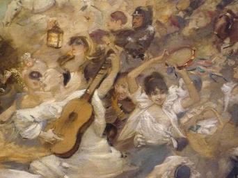 | Keywords: WILLETTE Adolphe,1884 - Parce Domine - Detail 041.jpg - Detail 041 - Pierrot chantant et jouant de la guitare au milieu de la foule en fête - Pierrot singing and playing guitare in the middle of the festive crowd - Montmartre - 1884 Oil on canvas Montmartre Own other versions PD-old-auto 1926 Details of Parce Domine by Adolphe Willette |