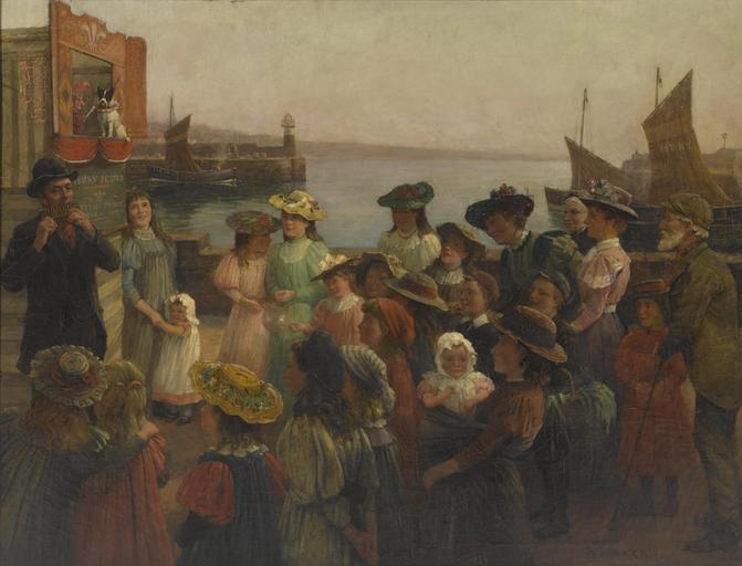 | Keywords: William Barr Punch and Judy show.jpg Punch and Judy show; signed 'W Barr ' lower right ; oil on canvas 36 x 47 1/4in http //www bonhams com by 1933 William Barr 1867-1933 PD-old-70 William Barr painter Theatre in art Punch and Judy Images from Bonhams Theatre audience Children in art |
