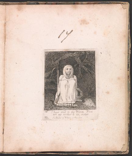 | Keywords: William Blake - For Children. The Gates of Paradise, Plate 18, "I have said to the Worm . . . ." - Google Art Project.jpg etching line engraving paper cream Etching and line engraving on moderately thick slightly textured cream wove paper London 1757 London 1827 William male 2369124 Blake British 1757 - 1827 /collection/yale-center-for-british-art/artwork/for-children-the-gates-of-paradise-plate-18-i-have-said-to-the-worm-william-blake/2369238/ William Blake Artist /artist/william-blake/4130035/ 4130035 /collection/yale-center-for-british-art/ Yale Center for British Art 2305845 http //britishart yale edu/ 2/23/2012 9 36 42 PM /collection/yale-center-for-british-art/artwork/for-children-the-gates-of-paradise-plate-18-i-have-said-to-the-worm-william-blake/2369238/ 1793 1793 branches dead sitting night darkness stick text cane historical subject Etching and line engraving on moderately thick slightly textured cream wove paper 140 2369238 False 1793 3/24/2012 2 47 03 PM YCBA/lido-TMS-2430 http //collections britishart yale edu/vufind/Record/1667354 Yale Center for British Art Paul Mellon Collection print 1790 1800 Felpham Creation w114 x h140 cm 1793 False 0 845703125 Volume for-children-the-gates-of-paradise-plate-18-i-have-said-to-the-worm-william-blake For Children The Gates of Paradise Plate 18 I have said to the Worm f 114 Inscribed in brown ink upper center 17 Inscription _Signed_and_Dated Not signed not dated Not on View Etching and line engraving on moderately thick slightly textured cream wove paper branches dead sitting night darkness stick text cane historical subject special url_id tgGiEU2h7AV9bg PD-old-100-1923 1827 Google Art Project works by William Blake For Children The Gates of Paradise |