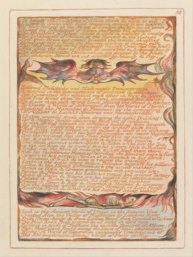 | Keywords: William Blake - Jerusalem, Plate 58, "In beauty the Daughters of Albion...." - Google Art Project.jpg print orange pen ink black watercolor paper cream Relief etching printed in orange with pen and black ink and watercolor on moderately thick smooth cream wove paper London 1757 London 1827 William male 2369124 Blake British 1757 - 1827 /collection/yale-center-for-british-art/artwork/jerusalem-plate-58-in-beauty-the-daughters-of-albion-william-blake/2372749/ William Blake Artist /artist/william-blake/4130035/ 4130035 /collection/yale-center-for-british-art/ Yale Center for British Art 2305845 http //britishart yale edu/ 2/23/2012 9 47 15 PM /collection/yale-center-for-british-art/artwork/jerusalem-plate-58-in-beauty-the-daughters-of-albion-william-blake/2372749/ 1804 1804 to 1820 roots wings flames fire skeleton text vines historical subject Relief etching printed in orange with pen and black ink and watercolor on moderately thick smooth cream wove paper 210 2372749 False 1820 3/24/2012 3 13 16 PM YCBA/lido-TMS-3490 http //collections britishart yale edu/vufind/Record/1667778 Yale Center for British Art Paul Mellon Collection print 1800 1830 Felpham Creation w149 x h210 cm 1804 to 1820 False 0 75 Volume jerusalem-plate-58-in-beauty-the-daughters-of-albion-william-blake Jerusalem Plate 58 In beauty the Daughters of Albion j 149 No inscription Inscription _Signed_and_Dated Not signed not dated Not on View Relief etching printed in orange with pen and black ink and watercolor on moderately thick smooth cream wove paper roots wings flames fire skeleton text vines historical subject special url_id UwH4Ui4N6h7uqg PD-old-100-1923 1827 Jerusalem The Emanation of the Giant Albion - copy E 058 Google Art Project works by William Blake |