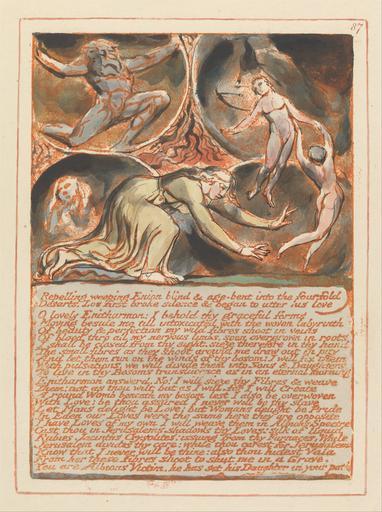 | Keywords: William Blake - Jerusalem, Plate 87, "Repelling weeping Enion...." - Google Art Project.jpg print orange pen ink black watercolor paper cream Relief etching printed in orange with pen and black ink and watercolor on moderately thick smooth cream wove paper London 1757 London 1827 William male 2369124 Blake British 1757 - 1827 /collection/yale-center-for-british-art/artwork/jerusalem-plate-87-repelling-weeping-enion-william-blake/2373650/ William Blake Artist /artist/william-blake/4130035/ 4130035 /collection/yale-center-for-british-art/ Yale Center for British Art 2305845 http //britishart yale edu/ 2/23/2012 9 48 10 PM /collection/yale-center-for-british-art/artwork/jerusalem-plate-87-repelling-weeping-enion-william-blake/2373650/ 1804 1804 to 1820 bending women roots men earth shell text cavern gown nudes historical subject Relief etching printed in orange with pen and black ink and watercolor on moderately thick smooth cream wove paper 210 2373650 False 1820 3/25/2012 9 07 23 PM YCBA/lido-TMS-3522 http //collections britishart yale edu/vufind/Record/1667814 Yale Center for British Art Paul Mellon Collection print 1800 1830 Felpham Creation w150 x h210 cm 1804 to 1820 False 0 74609375 Volume jerusalem-plate-87-repelling-weeping-enion-william-blake Jerusalem Plate 87 Repelling weeping Enion j 150 No inscription Inscription _Signed_and_Dated Not signed not dated Not on View Relief etching printed in orange with pen and black ink and watercolor on moderately thick smooth cream wove paper bending women roots men earth shell text cavern gown nudes historical subject special url_id YwGjdh5R2wHHqg PD-old-100-1923 1827 Jerusalem The Emanation of the Giant Albion - copy E 087 Google Art Project works by William Blake |