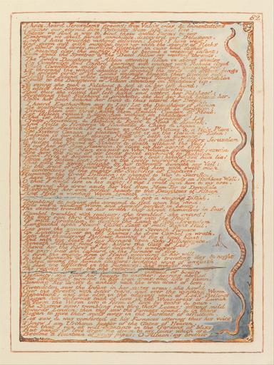 | Keywords: William Blake - Jerusalem, Plate 82, "I have heard Jerusalems groans...." - Google Art Project.jpg print orange pen ink black watercolor paper cream Relief etching printed in orange with pen and black ink and watercolor on moderately thick smooth cream wove paper London 1757 London 1827 William male 2369124 Blake British 1757 - 1827 /collection/yale-center-for-british-art/artwork/jerusalem-plate-82-i-have-heard-jerusalems-groans-william-blake/2368920/ William Blake Artist /artist/william-blake/4130035/ 4130035 /collection/yale-center-for-british-art/ Yale Center for British Art 2305845 http //britishart yale edu/ 2/23/2012 9 48 00 PM /collection/yale-center-for-british-art/artwork/jerusalem-plate-82-i-have-heard-jerusalems-groans-william-blake/2368920/ 1804 1804 to 1820 clouds sky snake smoke text text historical subject historical subject Relief etching printed in orange with pen and black ink and watercolor on moderately thick smooth cream wove paper 222 2368920 False 1820 3/24/2012 2 50 33 PM YCBA/lido-TMS-3517 http //collections britishart yale edu/vufind/Record/1667808 Yale Center for British Art Paul Mellon Collection print 1800 1830 London Creation w162 x h222 cm 1804 to 1820 False 0 75 Volume jerusalem-plate-82-i-have-heard-jerusalems-groans-william-blake Jerusalem Plate 82 I have heard Jerusalems groans j 162 No inscription Inscription _Signed_and_Dated Not signed not dated Not on View Relief etching printed in orange with pen and black ink and watercolor on moderately thick smooth cream wove paper clouds sky snake smoke text text historical subject historical subject special url_id lQGjdvTl1j3N4g PD-old-100-1923 1827 Jerusalem The Emanation of the Giant Albion - copy E 082 Google Art Project works by William Blake |
