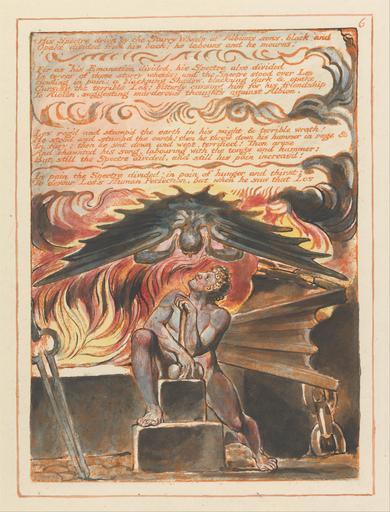 Keywords: William Blake - Jerusalem, Plate 6, "His Spectre driv'n...." - Google Art Project.jpg print orange pen ink black watercolor paper cream Relief etching printed in orange with pen and black ink and watercolor on moderately thick smooth cream wove paper London 1757 London 1827 William male 2369124 Blake British 1757 - 1827 /collection/yale-center-for-british-art/artwork/jerusalem-plate-6-his-spectre-drivn-william-blake/2382294/ William Blake Artist /artist/william-blake/4130035/ 4130035 /collection/yale-center-for-british-art/ Yale Center for British Art 2305845 http //britishart yale edu/ 2/23/2012 9 47 18 PM /collection/yale-center-for-british-art/artwork/jerusalem-plate-6-his-spectre-drivn-william-blake/2382294/ 1804 1804 to 1820 blacksmith men fire smoke stone chain wings text hammer bellows tongs nudes historical subject Relief etching printed in orange with pen and black ink and watercolor on moderately thick smooth cream wove paper 225 2382294 False 1820 3/24/2012 4 10 37 PM YCBA/lido-TMS-3492 http //collections britishart yale edu/vufind/Record/1667780 Yale Center for British Art Paul Mellon Collection print 1800 1830 Felpham Creation w162 x h225 cm 1804 to 1820 False 0 76171875 Item jerusalem-plate-6-his-spectre-drivn-william-blake Jerusalem Plate 6 His Spectre driv'n j 162 No inscription Inscription _Signed_and_Dated Not signed not dated Not on View Relief etching printed in orange with pen and black ink and watercolor on moderately thick smooth cream wove paper blacksmith men fire smoke stone chain wings text hammer bellows tongs nudes historical subject special url_id RwFFPc-gGiFwAg PD-old-100-1923 1827 Jerusalem The Emanation of the Giant Albion - copy E - Google Art Project 006 Google Art Project works by William Blake