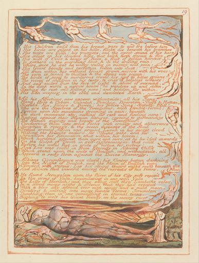 | Keywords: William Blake - Jerusalem, Plate 19, "His children exil'd from his breast...." - Google Art Project.jpg print orange pen ink black watercolor paper cream Relief etching printed in orange with pen and black ink and watercolor on moderately thick smooth cream wove paper London 1757 London 1827 William male 2369124 Blake British 1757 - 1827 /collection/yale-center-for-british-art/artwork/jerusalem-plate-19-his-children-exild-from-his-breast-william-blake/2384207/ William Blake Artist /artist/william-blake/4130035/ 4130035 /collection/yale-center-for-british-art/ Yale Center for British Art 2305845 http //britishart yale edu/ 2/23/2012 9 46 13 PM /collection/yale-center-for-british-art/artwork/jerusalem-plate-19-his-children-exild-from-his-breast-william-blake/2384207/ 1804 1804 to 1820 sun dead women men text nudes historical subject mourning Relief etching printed in orange with pen and black ink and watercolor on moderately thick smooth cream wove paper 225 2384207 False 1820 3/24/2012 4 26 25 PM YCBA/lido-TMS-3447 http //collections britishart yale edu/vufind/Record/1667721 Yale Center for British Art Paul Mellon Collection print 1800 1830 London Creation w162 x h225 cm 1804 to 1820 False 0 755859375 Volume jerusalem-plate-19-his-children-exild-from-his-breast-william-blake Jerusalem Plate 19 His children exil'd from his breast j 162 No inscription Inscription _Signed_and_Dated Not signed not dated Not on View Relief etching printed in orange with pen and black ink and watercolor on moderately thick smooth cream wove paper sun dead women men text nudes historical subject mourning special url_id 1wEUyr_FGqfSPg PD-old-100-1923 1827 Jerusalem The Emanation of the Giant Albion - copy E - Google Art Project 019 Google Art Project works by William Blake |