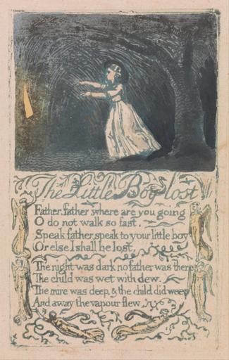 | Keywords: William Blake - Songs of Innocence and of Experience, Plate 16, "The Little Boy Lost" (Bentley 13) - Google Art Project.jpg print green watercolor paper cream Relief etching printed in green with watercolor on moderately thick slightly textured cream wove paper London 1757 London 1827 William male 2369124 Blake British 1757 - 1827 /collection/yale-center-for-british-art/artwork/songs-of-innocence-and-of-experience-plate-16-the-little-boy-lost-bentley-13-william-blake/2359692/ William Blake Artist /artist/william-blake/4130035/ 4130035 /collection/yale-center-for-british-art/ Yale Center for British Art 2305845 http //britishart yale edu/ 2/23/2012 9 37 06 PM /collection/yale-center-for-british-art/artwork/songs-of-innocence-and-of-experience-plate-16-the-little-boy-lost-bentley-13-william-blake/2359692/ 1789 1789 branches leaf mother angels darkness flame children boy woman wings text trees vines forest hat gown historical subject Relief etching printed in green with watercolor on moderately thick slightly textured cream wove paper 117 2359692 False 1789 3/24/2012 2 01 32 PM YCBA/lido-TMS-2493 http //collections britishart yale edu/vufind/Record/1667370 Yale Center for British Art Paul Mellon Collection print 1780 1790 London Creation w73 x h117 cm 1789 False 0 634765625 Volume songs-of-innocence-and-of-experience-plate-16-the-little-boy-lost-bentley-13-william-blake Songs of Innocence and of Experience Plate 16 The Little Boy Lost Bentley 13 s 73 Inscribed in graphite upper center 10 Inscription _Signed_and_Dated Not signed not dated Not on View Relief etching printed in green with watercolor on moderately thick slightly textured cream wove paper branches leaf mother angels darkness flame children boy woman wings text trees vines forest hat gown historical subject special url_id 9wHW9bX59WMryA PD-old-100-1923 1827 Songs of Innocence and Experience - Copy F Google Art Project works by William Blake |