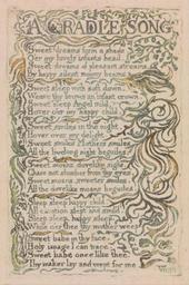Keywords: William Blake - Songs of Innocence and of Experience, Plate 26, "A Cradle Song" (Bentley 16) - Google Art Project.jpg print green pen ink watercolor paper cream Relief etching printed in green with pen and ink and watercolor on moderately thick slightly textured cream wove paper London 1757 London 1827 William male 2369124 Blake British 1757 - 1827 /collection/yale-center-for-british-art/artwork/songs-of-innocence-and-of-experience-plate-26-a-cradle-song-bentley-16-william-blake/2363522/ William Blake Artist /artist/william-blake/4130035/ 4130035 /collection/yale-center-for-british-art/ Yale Center for British Art 2305845 http //britishart yale edu/ 2/23/2012 9 37 15 PM /collection/yale-center-for-british-art/artwork/songs-of-innocence-and-of-experience-plate-26-a-cradle-song-bentley-16-william-blake/2363522/ 1789 1789 branches sleeping mother women children infant baby woman leaf text vines chair cradle crib drapes historical subject Relief etching printed in green with pen and ink and watercolor on moderately thick slightly textured cream wove paper 114 2363522 False 1789 3/24/2012 2 22 26 PM YCBA/lido-TMS-2505 http //collections britishart yale edu/vufind/Record/1667376 Yale Center for British Art Paul Mellon Collection print 1780 1790 Felpham Creation w73 x h114 cm 1789 False 0 6640625 Volume songs-of-innocence-and-of-experience-plate-26-a-cradle-song-bentley-16-william-blake Songs of Innocence and of Experience Plate 26 A Cradle Song Bentley 16 s 73 Inscribed in graphite upper center 15 Inscription _Signed_and_Dated Not signed not dated Not on View Relief etching printed in green with pen and ink and watercolor on moderately thick slightly textured cream wove paper branches sleeping mother women children infant baby woman leaf text vines chair cradle crib drapes historical subject special url_id 5QEE_vJoykWyfA PD-old-100-1923 1827 Songs of Innocence and Experience - Copy F Google Art Project works by William Blake