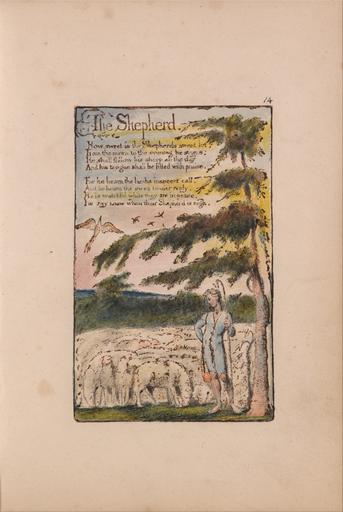 | Keywords: William Blake - Songs of Innocence and of Experience, Plate 14, "The Shepherd" (Bentley 5) - Google Art Project.jpg print brown pen ink black watercolor paper cream Relief etching printed in dark-brown with pen and black ink and watercolor on moderately thick slightly textured cream wove paper London 1757 London 1827 William male 2369124 Blake British 1757 - 1827 /collection/yale-center-for-british-art/artwork/songs-of-innocence-and-of-experience-plate-14-the-shepherd-bentley-5-william-blake/2381566/ William Blake Artist /artist/william-blake/4130035/ 4130035 /collection/yale-center-for-british-art/ Yale Center for British Art 2305845 http //britishart yale edu/ 2/23/2012 9 51 41 PM /collection/yale-center-for-british-art/artwork/songs-of-innocence-and-of-experience-plate-14-the-shepherd-bentley-5-william-blake/2381566/ 1789 1789 to 1794 birds branches leaf grazing sheep boy man shepherd crook shepherd's text hills trees staffs walking sticks historical subject Relief etching printed in dark-brown with pen and black ink and watercolor on moderately thick slightly textured cream wove paper 111 2381566 False 1794 3/24/2012 4 04 22 PM YCBA/lido-TMS-3733 http //collections britishart yale edu/vufind/Record/1667975 Yale Center for British Art Paul Mellon Collection print 1780 1800 Felpham Creation w70 x h111 cm 1789 to 1794 False 0 669921875 Volume songs-of-innocence-and-of-experience-plate-14-the-shepherd-bentley-5-william-blake Songs of Innocence and of Experience Plate 14 The Shepherd Bentley 5 s 70 Inscribed in black ink upper right 14 Inscription _Signed_and_Dated Not signed not dated Not on View Relief etching printed in dark-brown with pen and black ink and watercolor on moderately thick slightly textured cream wove paper birds branches leaf grazing sheep boy man shepherd crook shepherd's text hills trees staffs walking sticks historical subject special url_id BgE05d8xkIQHBg PD-old-100-1923 1827 Songs of Innocence and Experience - Copy L Google Art Project works by William Blake |