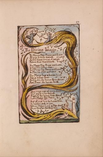 | Keywords: William Blake - Songs of Innocence and of Experience, Plate 27, "The Divine Image" (Bentley 18) - Google Art Project.jpg between 1789 1794 print brown pen ink black watercolor paper cream Relief etching printed in dark-brown with pen and black ink and watercolor on moderately thick slightly textured cream wove paper London 1757 London 1827 William male 2369124 Blake British 1757 - 1827 /collection/yale-center-for-british-art/artwork/songs-of-innocence-and-of-experience-plate-27-the-divine-image-bentley-18-william-blake/2390201/ William Blake Artist /artist/william-blake/4130035/ 4130035 /collection/yale-center-for-british-art/ Yale Center for British Art 2305845 http //britishart yale edu/ 2/23/2012 9 52 04 PM /collection/yale-center-for-british-art/artwork/songs-of-innocence-and-of-experience-plate-27-the-divine-image-bentley-18-william-blake/2390201/ 1789 1789 to 1794 leaf men women text vegetation plant flowers vines nude historical subject Relief etching printed in dark-brown with pen and black ink and watercolor on moderately thick slightly textured cream wove paper 114 2390201 False 1794 3/24/2012 5 03 28 PM YCBA/lido-TMS-3747 http //collections britishart yale edu/vufind/Record/1667990 Yale Center for British Art Paul Mellon Collection print 1780 1800 Felpham Creation w70 x h114 cm 1789 to 1794 False 0 654296875 Volume songs-of-innocence-and-of-experience-plate-27-the-divine-image-bentley-18-william-blake Songs of Innocence and of Experience Plate 27 The Divine Image Bentley 18 s 70 Inscribed in black ink upper right 27 Inscription _Signed_and_Dated Not signed not dated Not on view Relief etching printed in dark-brown with pen and black ink and watercolor on moderately thick slightly textured cream wove paper leaf men women text vegetation plant flowers vines nude historical subject special url_id OwGNb64yN_1h3w PD-old-100-1923 1827 Google Art Project works by William Blake Songs of Innocence - Divine Image Songs of Innocence and Experience - Copy L |