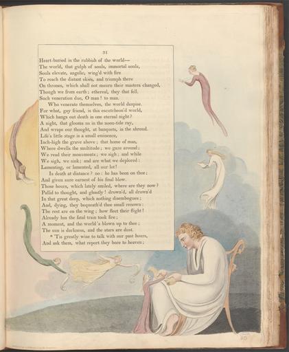 | Keywords: William Blake - Young's Night Thoughts, Page 31, "'Tis greatly wise to talk with our past hours" - Google Art Project.jpg ~ 1797 etching line engraving watercolor paper cream Etching and line engraving with watercolor on moderately thick slightly textured cream wove paper London 1757 London 1827 William male 2369124 Blake British 1757 - 1827 /collection/yale-center-for-british-art/artwork/youngs-night-thoughts-page-31-tis-greatly-wise-to-talk-with-our-past-hours-william-blake/2354736/ William Blake Artist /artist/william-blake/4130035/ 4130035 /collection/yale-center-for-british-art/ Yale Center for British Art 2305845 http //britishart yale edu/ 2/23/2012 9 34 46 PM /collection/yale-center-for-british-art/artwork/youngs-night-thoughts-page-31-tis-greatly-wise-to-talk-with-our-past-hours-william-blake/2354736/ 1792 ca 1797 women sitting seated men paper text chairs historical subject scrolls Etching and line engraving with watercolor on moderately thick slightly textured cream wove paper 425 2354736 False 1802 3/24/2012 1 34 43 PM YCBA/lido-TMS-2319 http //collections britishart yale edu/vufind/Record/1667271 Yale Center for British Art Paul Mellon Collection print 1790 1810 London Creation w321 x h425 cm ca 1797 False 0 822265625 Volume youngs-night-thoughts-page-31-tis-greatly-wise-to-talk-with-our-past-hours-william-blake Young's Night Thoughts Page 31 'Tis greatly wise to talk with our past hours y 321 No inscription Inscription _Signed_and_Dated Not signed not dated Not on View Etching and line engraving with watercolor on moderately thick slightly textured cream wove paper women sitting seated men paper text chairs historical subject scrolls special url_id 6QHc6Gx1Lflhdw PD-old-100-1923 1827 William Blake's illustrations to Young's Night Thoughts Google Art Project works by William Blake |