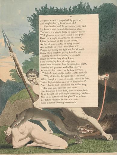 | Keywords: William Blake - Young's Night Thoughts, Page 70, "'Till Death, That Mighty Hunter, Earths Them All" - Google Art Project.jpg etching line engraving watercolor paper cream Etching and line engraving with watercolor on moderately thick slightly textured cream wove paper London 1757 London 1827 William male 2369124 Blake British 1757 - 1827 /collection/yale-center-for-british-art/artwork/youngs-night-thoughts-page-70-till-death-that-mighty-hunter-earths-them-all-william-blake/2381407/ William Blake Artist /artist/william-blake/4130035/ 4130035 /collection/yale-center-for-british-art/ Yale Center for British Art 2305845 http //britishart yale edu/ 2/23/2012 9 49 02 PM /collection/yale-center-for-british-art/artwork/youngs-night-thoughts-page-70-till-death-that-mighty-hunter-earths-them-all-william-blake/2381407/ 1797 1797 wolves dogs men rocks trees spear nude historical subject Etching and line engraving with watercolor on moderately thick slightly textured cream wove paper 445 2381407 False 1797 3/24/2012 4 04 11 PM YCBA/lido-TMS-3561 http //collections britishart yale edu/vufind/Record/1667855 Yale Center for British Art Paul Mellon Collection print 1790 1800 London Creation w327 x h445 cm 1797 False 0 7578125 Volume youngs-night-thoughts-page-70-till-death-that-mighty-hunter-earths-them-all-william-blake Young's Night Thoughts Page 70 'Till Death That Mighty Hunter Earths Them All y 327 No inscription Inscription _Signed_and_Dated Not signed not dated Not on View Etching and line engraving with watercolor on moderately thick slightly textured cream wove paper wolves dogs men rocks trees spear nude historical subject special url_id 6AHTLslvK9dseg PD-old-100-1923 1827 William Blake's illustrations to Young's Night Thoughts 070 Google Art Project works by William Blake |
