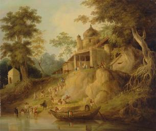 | Keywords: William Daniell - The Banks of the Ganges - Google Art Project.jpg  ~ 1825 Chertsey 1769 London 1837 William male 2326575 Daniell British 1769 - 1837 /collection/yale-center-for-british-art/artwork/the-banks-of-the-ganges-william-daniell/2445457/ William Daniell Attributed to /artist/william-daniell/4126698/ 4126698 /collection/yale-center-for-british-art/ Yale Center for British Art 2305845 http //britishart yale edu/ 2/24/2012 12 20 01 AM /collection/yale-center-for-british-art/artwork/the-banks-of-the-ganges-william-daniell/2445457/ 1820 ca 1825 roots Orientalism white color people man bathers rocks water banks landscape flag boat Oil on canvas 635 2445457 False 1830 3/24/2012 10 54 56 PM YCBA/lido-TMS-721 http //collections britishart yale edu/vufind/Record/1670839 Yale Center for British Art Paul Mellon Collection painting 1820 1840 London Creation w737 x h635 cm ca 1825 False 1 1906976744186 Item the-banks-of-the-ganges-william-daniell The Banks of the Ganges b 737 No inscription Inscription _Signed_and_Dated Not signed not dated Not on View Oil on canvas roots Orientalism white color people man bathers rocks water banks landscape flag boat special url_id gQFUYn1Z1ThbQg PD-old-100-1923 1837 William Daniell Google Art Project works by William Daniell Ganges River in art Landscape paintings of India 1820s paintings from India 1825 oil on canvas paintings 19th-century oil on canvas paintings in the United States 1825 paintings in the United States Paintings in the Yale Center for British Art |