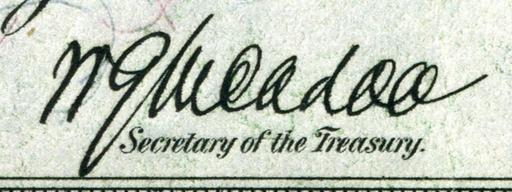 Keywords: William Gibbs McAdoo (Engraved Signature).jpg en Engraved signature on U S Bank Notes “ paper currency 2012-12-26 www nationalcurrencyfoundation org Bureau of Engraving and Printing Smithsonian Institution PD-USGov Engravings Signatures on United States Banknotes Smithsonian Institution Currency National Numismatic Collection Banknote signatures scanned by User Godot13 |