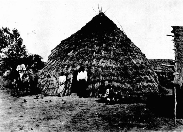 Keywords: William S. Soule - Wichita grass house.jpg ;Wichita grass house The Wichitas made a permanent lodge by covering a pole frame with rush thatching The only opening was the door so that the interior was dark and sooty Smithsonian Instution Bureau of American Ethnology In Wilbur Sturtevant Nye Plains Indian raiders the final phases of warfare from the Arkansas to the Red River with original photographs by William S Soule University of Oklahoma Press 1st edition 1968 ISBN 0806111755 p398 Wilbur Sturtevant Nye Plains Indian raiders the final phases of warfare from the Arkansas to the Red River with original photographs by William S Soule University of Oklahoma Press 1st edition 1968 ISBN 0806111755 p399 decade 1870 Creator William S Soule PD-old-auto-1923 1908 Wichita Oklahoma in the 1870s William S Soule Wigwam or Wickiup Grass buildings |