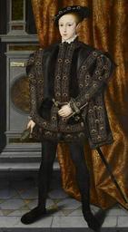 Keywords: William Scrots - Edward VI (Royal Collection).jpg Attributed to 1550 Oil on panel cm 167 90 Institution Royal Collection of the United Kingdom accession number 405751 object history Purchased by Queen Victoria in 1882 credit line exhibition history http //www royalcollection org uk/collection/405751/edward-vi-1537-53 Royal Collection PD-old-100 DEFAULTSORT Scrots William; Edward 06; Royal Collection William Scrots 16th-century paintings in the Royal Collection of the United Kingdom Edward VI of England by William Scrots 1550s portrait paintings Schaube Portraits with ornamental background Ornamental clothing in art Black and yellow clothing Portraits holding sword Males with black headwear in art Portrait paintings with architectural background Portraits holding gloves 16th-century men looking at viewer in art Portrait paintings of standing men 1550s paintings in the United Kingdom Portrait paintings in the United Kingdom Portrait paintings with notes |