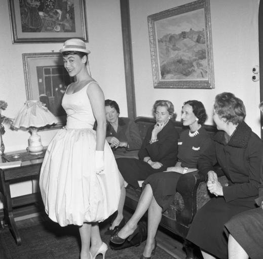 | Keywords: mote klær design art fashion clothes haute couturier blackandwhite monochrome indoor black and white Visning av William Duborgh Jensens aller første kolleksjon i Riddervoldsgate 9 på Frogner i Oslo, våren 1958. Modell: Lill-Ann Williams mor nr. 2 fra høyre. Fotograf: Strand Arkivreferanse: PA-0797_Ud_2271_003_003 Visning av William Duborgh Jensens aller første kolleksjon i Riddervoldsgate 9 på Frogner i Oslo, våren 1958. Modell: Lill-Ann Williams mor nr. 2 fra høyre. Fotograf: Strand Arkivreferanse: PA-0797_Ud_2271_003_003 |