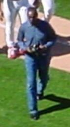 | Keywords: Willie McGee resize.JPG en Former Major League Baseball player Willie McGee leaves the Busch Stadium field after participating in the ceremonial first pitch with Albert Pujols Bob Gibson and Chris Carpenter This was the first regular season game ever played at Busch Stadium Photo taken with a Sony Cybershot digital camera from seating section 341 row 6 seat 11 at approximately 3 25 PM Central Standard Time own Monowi 2006-04-10 Willie McGee 2006 St Louis Cardinals season | ||||