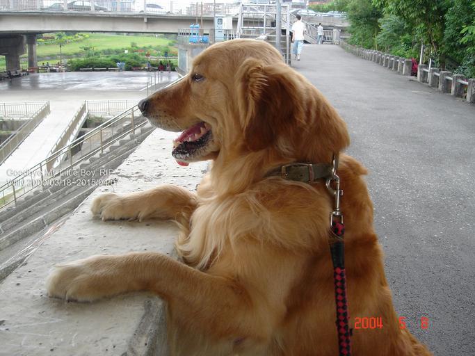 Keywords: doggy family golden retriever goldenretriever taipei taiwan willy 台北 台灣 家人 自然 鮮花及植物 黃金獵犬 pet dog animal outdoor 你真的很乖,很盡力的,撐著,陪我們了,謝謝你. 這幾天,我感覺你似乎還在貼心的陪著我,我想你知道我捨不得你. 但只要想起,自從你後腳不太方便行走後,就常常看到你睡覺時,像是夢見在跑步,不停地在滑動. 我想,我不應該放不下你,應該讓你放心的到天堂,快樂盡情的跑跳. 我真的很想念你.我會盡力的平復我的思念. 再見,威利,親愛的,謝謝你這15年來的陪伴. Goodbye,My little boy, My Love. Willy. Over the past 15 years,Thank you for your company. I really miss you so much... 你真的很乖,很盡力的,撐著,陪我們了,謝謝你. 這幾天,我感覺你似乎還在貼心的陪著我,我想你知道我捨不得你. 但只要想起,自從你後腳不太方便行走後,就常常看到你睡覺時,像是夢見在跑步,不停地在滑動. 我想,我不應該放不下你,應該讓你放心的到天堂,快樂盡情的跑跳. 我真的很想念你.我會盡力的平復我的思念. 再見,威利,親愛的,謝謝你這15年來的陪伴. Goodbye,My little boy, My Love. Willy. Over the past 15 years,Thank you for your company. I really miss you so much...