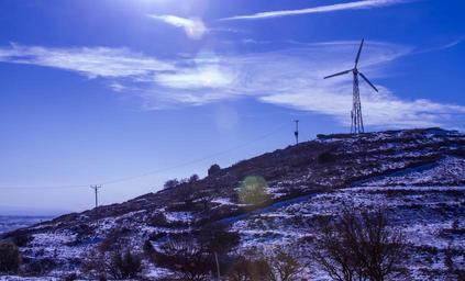 Keywords: wind energy wind turbine electricity snow energy power white electrical supply sky