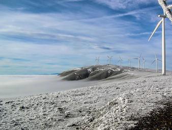Keywords: wind farm turbine snow energy power sky cold winter renewable wind turbines cloud