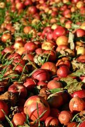 Keywords: windfall apple red autumn fruit food ripe nature grass orchard leaves ungeerntet